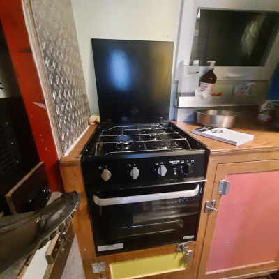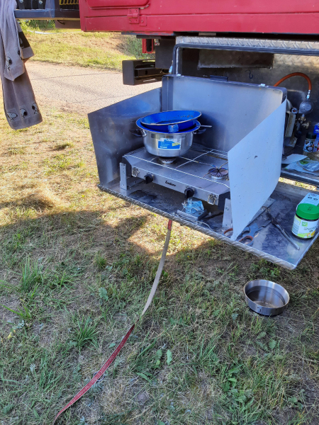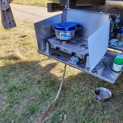 Cooking stove | Außenküche mit 2-flammigem Kocher von Enders in Klappe vom Staukasten fest verbaut. 5kg-Flasche im Staukasten. |