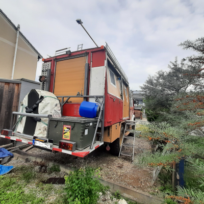 Löschfahrzeug Umbau zum Wohnmobil mit der Vorgabe, das H-Kennzeichen zu erhalten, auf Einzelbereifung umgerüstet und völlig autark zu sein.