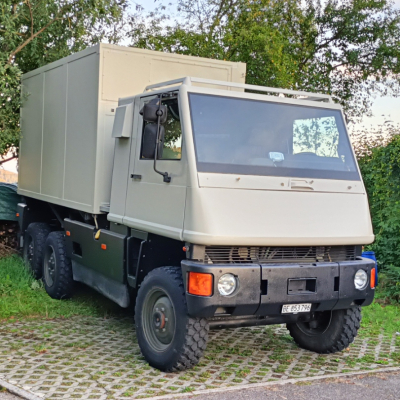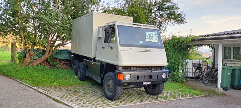 Das in der Schweiz produzierte Fahrzeug hat in seinem ersten Leben Dienst bei der Britischen Armee geleistet. Mit gut 5000 Km und gut 20 Jährigen später hat es ihn wider in seine Heimat verschlagen. Hier wird das Fahrzeug nun Schritt für Schritt um und ausgebaut.