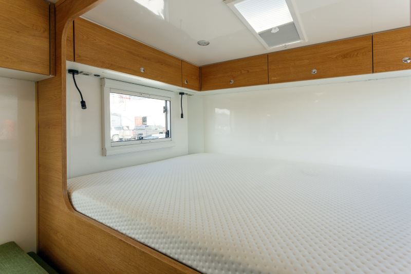 Hegel BG kept the original 4 point unimog mounting while keeping the production suspension. it has a special lining against mold and condensation, the panels are 6 cm. Each column has 1 cm of insulation. Impact-rated metal construction for security. | |