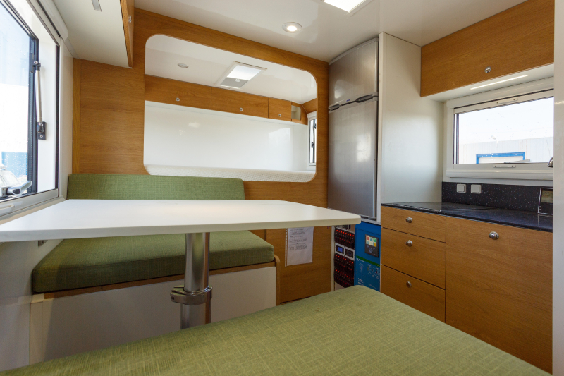 Number of beds – 3, Bathroom, Table\chairs, Laundry room, Kitchen box Dining table and upholstered benches that fold out into a second extra bed Spacious bed with Magniflex mattress - Main bed 140/200; Spare bed 90/180 Kitchen with induction hob |