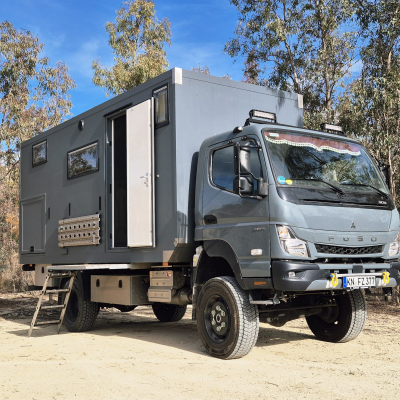 Das Fahrgestell wurde neu gekauft. Ein Kabinenbauer fertigte die Leerkabine mit Türen und Klappen sowie den Zwischenrahmen. Der Innenausbau sowie alles weitere ist 100% Eigenbau. Der Aufbau ist nie abgeschlossen. Es gibt immer etwas zu tun, nach jedem Urlaub gibt es wieder neue Ideen, Ergänzungen, Änderungen... ;-)