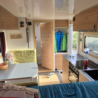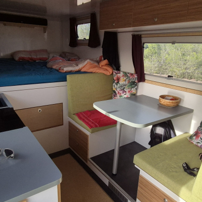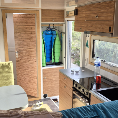 | Material of furniture | Wohnmobil-Möbelbauplatten Pappel/Ilomba, Fa. Vöhringer |