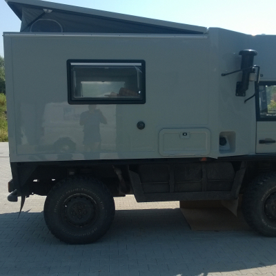 Wassertank 140 l (neu in 2024), Abwassertank 35l, Zerhackertoilette (Porzellan!), Klimaanlage, Standheizung, Solaranlage mit getrennten Stromkreis, 2 x 87 AH Batterien für den Aufbau, 220v Wandler, Induktionsherdplatte, Engel-KompressorKühlbox hinter dem Beifahrersitz, Durchstieg zum Fahrerhaus, zahlreiche Staufächer im Aufbau, 5 Staukästen unterhalb Aufbau, grosses Staufach über der Fahrerkabine. Verkleidungen in der Fahrerkabine wurde 2023 von einem Sattler komplett erneuert. | |