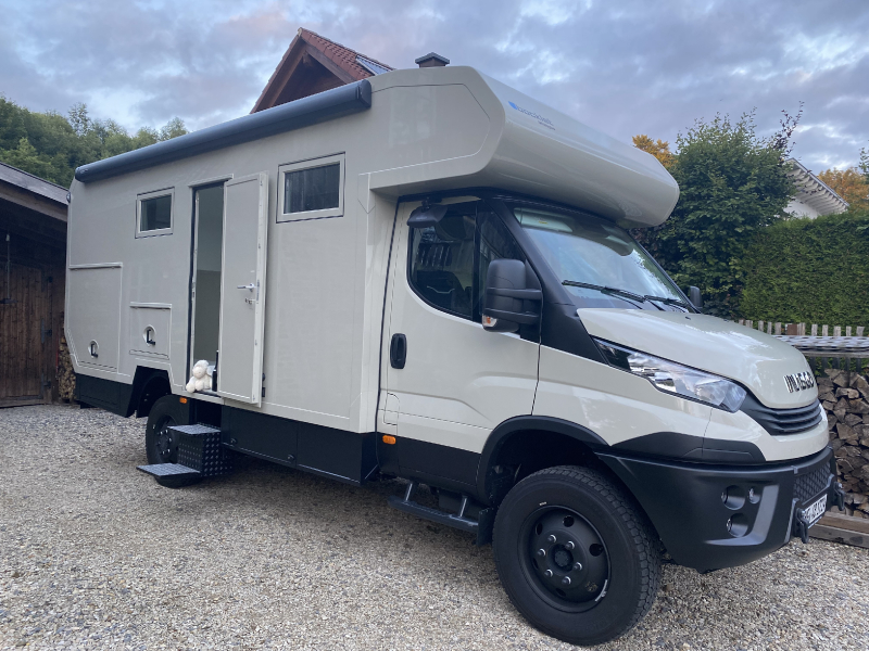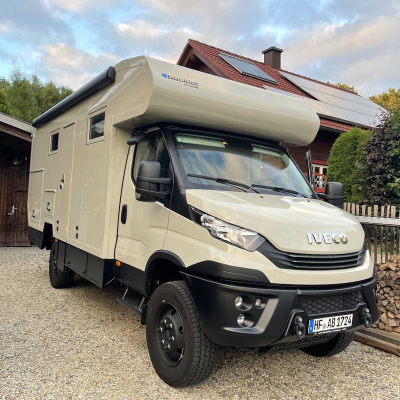Die Anforderungen an ein Reisefahrzeug verändern sich wie die Fahrer:innen. War es vor 25 Jahren noch ein alter Mercedes-G 230E für den Transport von Reiseausrüstung und zum ziehen vom Anhänger, folgte für sieben Jahre ein Mercedes Kurzhauber LA710 mit kurzem Radstand, 385er-Reifen und 3,5m-Shelter, Ausbau simple, aber haltbar bis heute. Viel erlebt, aber beim nächsten Fahrzeug wurde alles besser: MAN LAEC 8.224 mit leerem Koffer von Walther Eggers, sein Prototyp. Ausgebaut, 13 Jahre gereist. Robust, komfortabel, wertig. Dem folgte ein kompatkter Iglhaut-Sprinter mit sehr überlegtem Hünerkopf-Ausbau, Luxus pur, Komfort beim Fahren, sparsam, tolles Auto - aber die Fahrrad hingen weiter am Heck. Deshalb haben wir rechtzeitig einen Daily-4x4 7.180 geordert mit langem Radstand und einen leeren Aufbau bei Bocklet in Auftrag gegeben, mit Heckabsenkung und Fahrradgarage. Den gilt es nun reisefertig auszubauen.