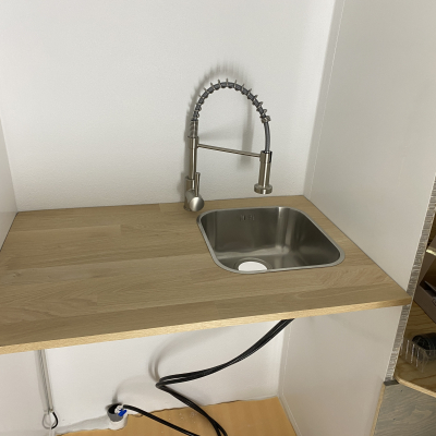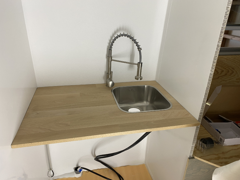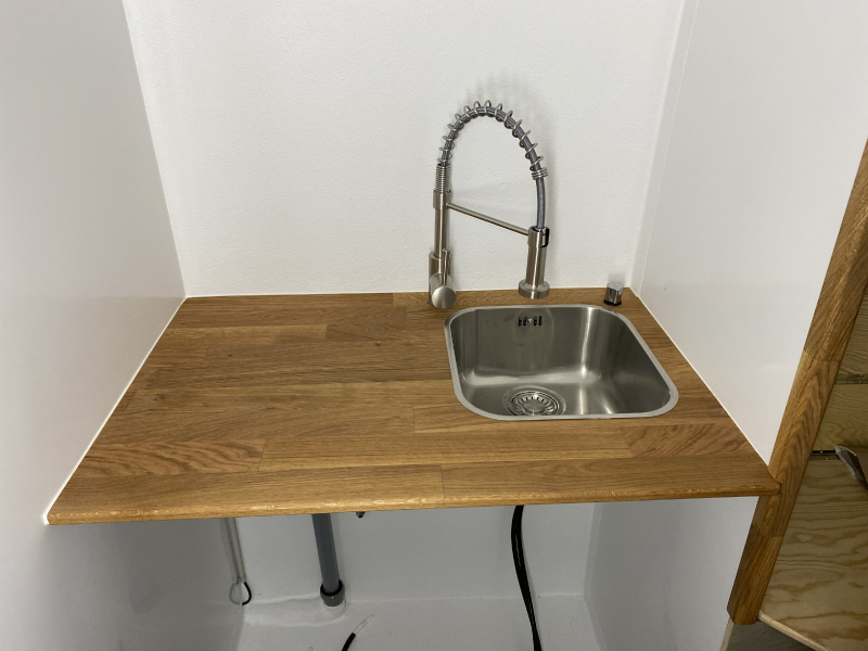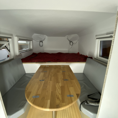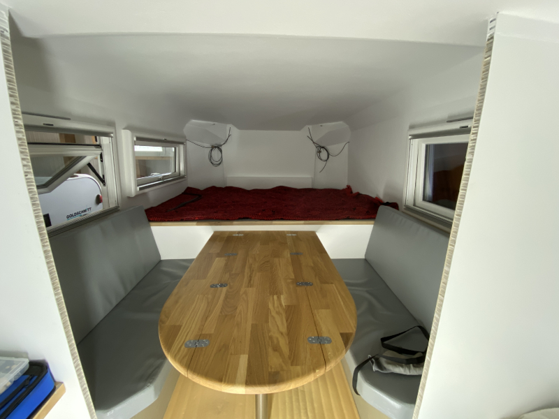 | Der ganze Innenausbau erfolgt eher spartanisch. Es soll kein „Glampingmobil“ werden. | |
