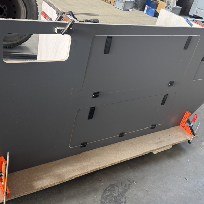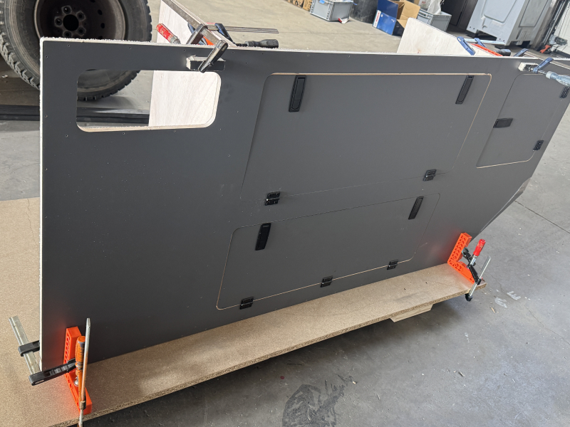 | auf der eigenen cmc fräse entstehen gerade alle Möbel - das holz kommt von epic ply, und ist beschichtet, geleimt und geschraubt , sollte also pistentauglich sein | |