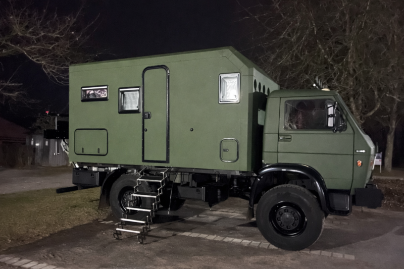 Yoda ist unser erster LKW und klassisches EXMO. Mit dem MAN 8.136 Fahrgestell von 1988 sind wir - abgesehen vom Fahrgeräusch - wegen seiner Robustheit und Simplizität sehr froh, und fühlen uns dort wie daheim da es wegen der damaligen VW/MAN fast wie unsere bisherigen VW Busse aussieht. Die Kabine ist von Treibgut. Wir sind in der Selbstausbaugruppe, da wir den bestehenden Ausbau, der vom Konzept voll unsere Bedürfnisse getroffen hat, an einigen Stellen optimieren wollen. Unsere Reiseziele sind (erst mal) die Wilden Regionen von Europa und dann auch Nord-Afrika.