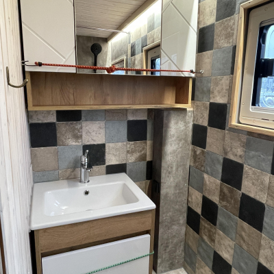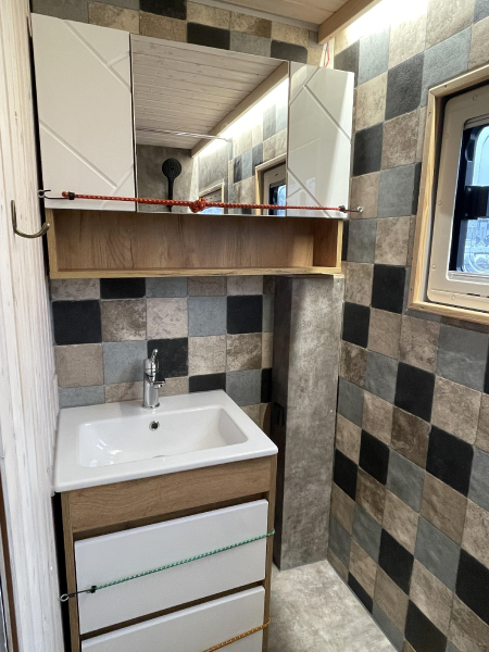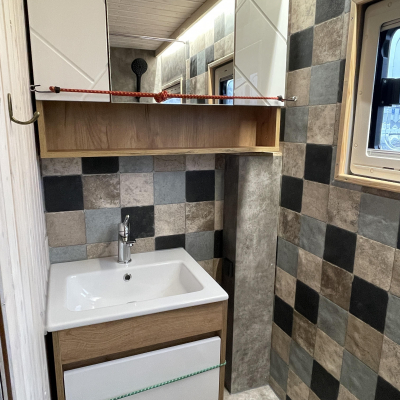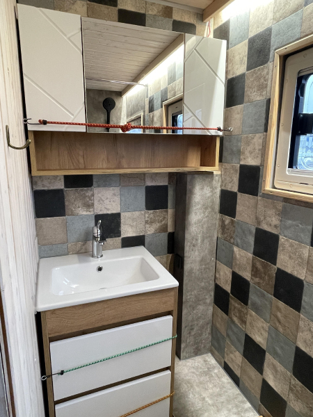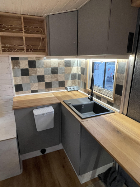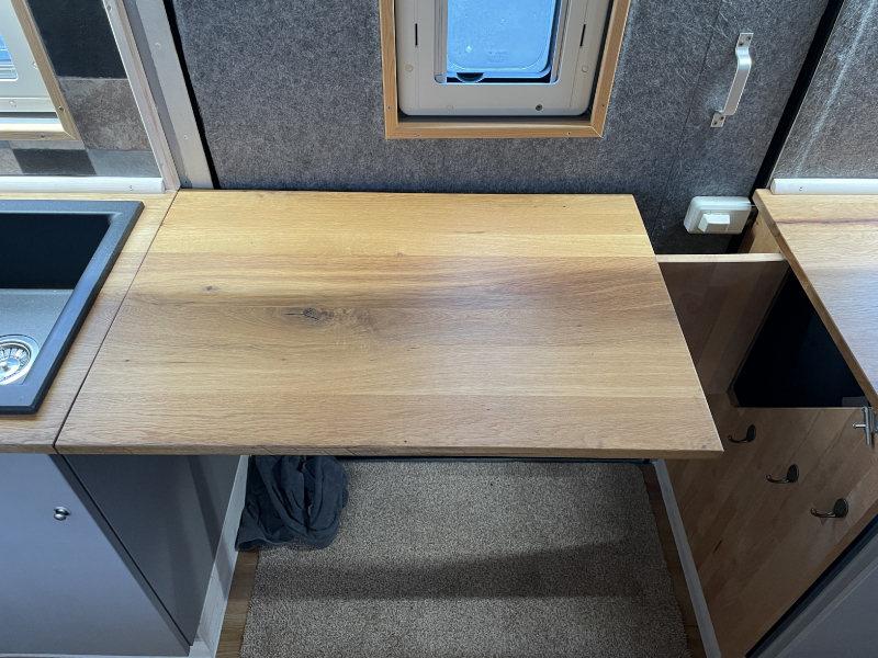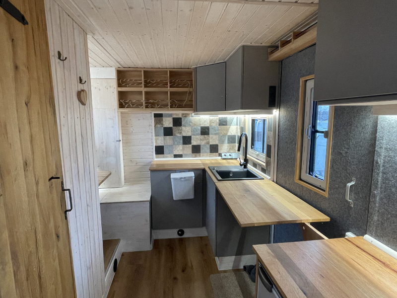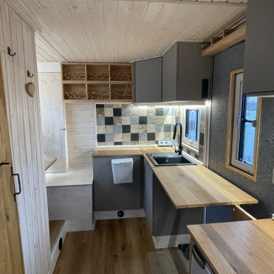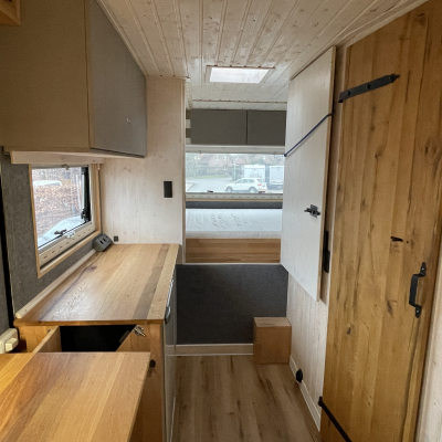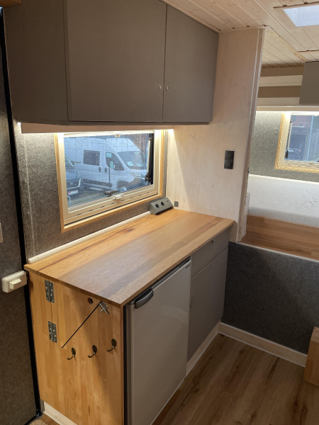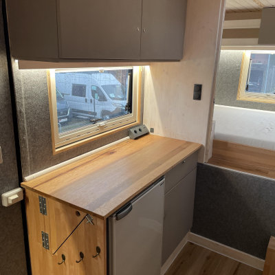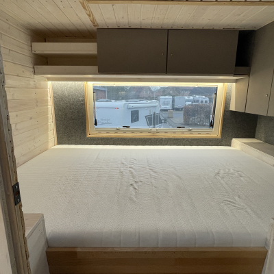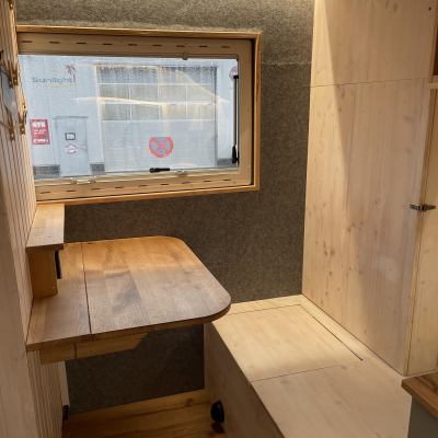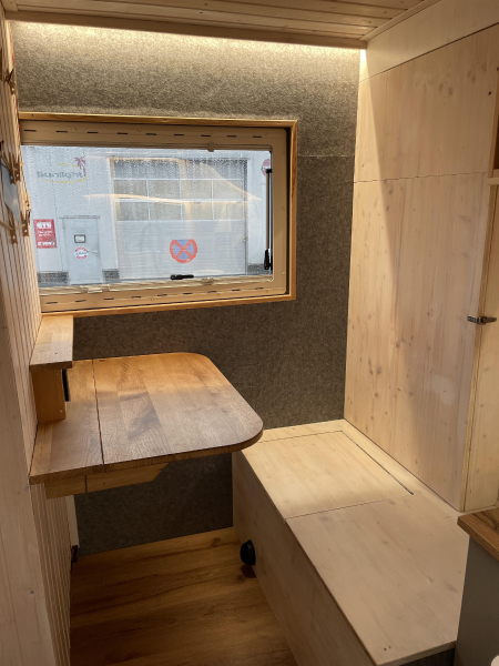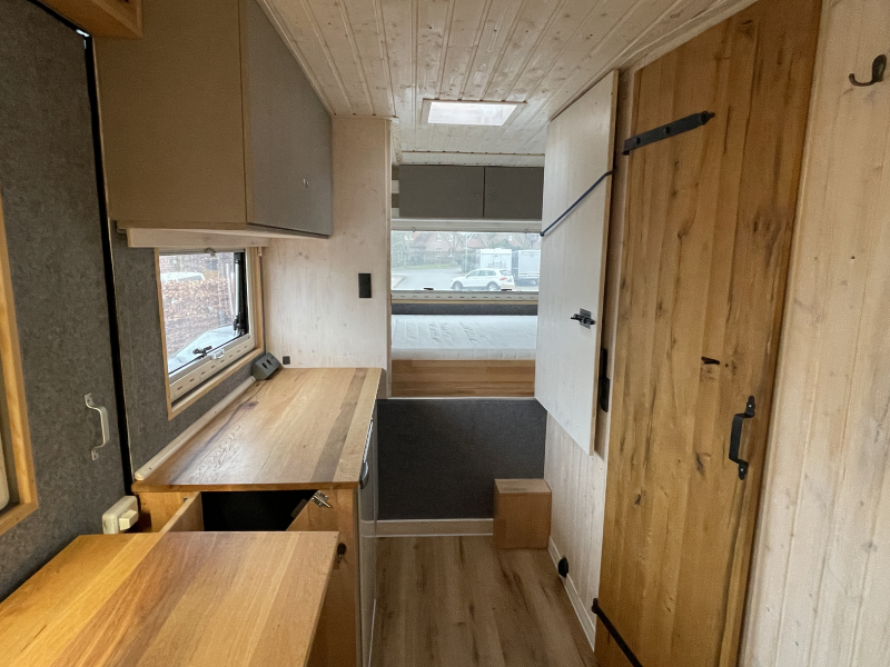Innenausstattung: Festbett mit extra Tür zum Schlafbereich , Dinette, Küche mit Induktion, Bad mit Dusche/Trockentrenntoilette