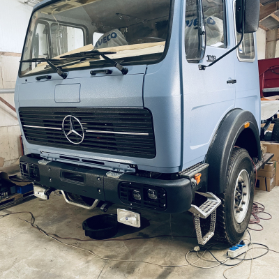 Ex Feuerwehr direkt gekauft bei die FFW Auw (Prüm). Fahrzeug MB 1019AF Nach unsere Reisen in mehrere "normale" Wohnmobile (wovon ein selbstgebautes) seit über 37 Jahre wurden unsere Reisen immer Abenteuerlicher. Trotz ein grosses WoMo (Flair von Niesmann&Bischoff) wollten wir immer mehr die kleinere Strassen befahren. OffRoad kam sowieso nicht in Frage. Manchmal ging es auch zu weit und mussten mit Hilfe eines Schleppers herausgezogen werden. Da kam auch der Gedanke dass ein 4x4 besser passen würde. Aber kein Bus, weil dann der Platz und Gewichtslimit zu sehr spielen würde. Daher sind wir auf dem Umbau gekommen der ich seit 2 Jahre ausführe. Ich mache ALLES alleine und ohne Hilfe und in ein Jahr soll das Fahrzeug reisefertig sein. Dann ist auch meine Frau pensioniert und wollen wir in 80% unsere Zeit die Welt erkunden. Europa kennen wir eigentlich schon aber wir wollen im ersten Jahr, unser Fahrzeug besser kennenlernen in Europa. Danach geht es dann in die ganze Welt.