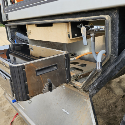 -4 luftgefederte Sitze 2x Grammer 90.3 vorn 2x ISRI 6860 NTS hinten 1 Die hinteren Sitze lassen sich als ganzes rückwärtig kippen, sodass diese auch mit Kindersitzen eine bequeme Schlafposition ermöglichen. - Schall und Wärmedämmung mit Dynamat, - Audiosystem, - CB Funk plus Handfunke, - RAM Tablethalterungen (3x) - Klimaanlage, - Käfig um das Fahrerhaus, Licht komplett auf LED umgebaut. Vorne WAS Leuchten mir sehr guter Lichtausbeute. Dazu 4lfm Lighbars, die die Nacht zum Tag machen. LED spots zu beiden Seiten und nach hinten. Vom Fahrerhaus und vom Wohnbereich ansteuerbar. Heckplatform absenkbar mit 2 Ersatzrädern, Platz für Diverses, ein Motorrad oder 2 E-Bikes. | |
