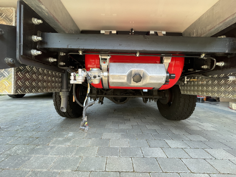 60l Brennstofftank mittig hinter der Achse verbaut, das entspricht etwas mehr als 2 x 11kg Gasflaschen.