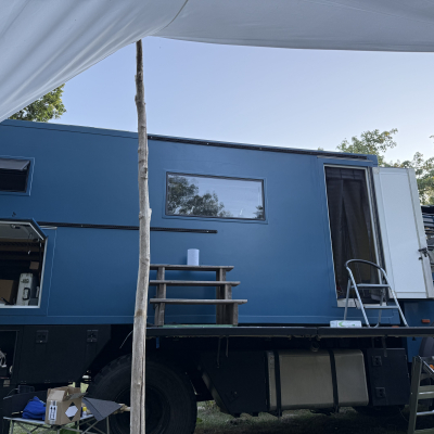 Der Gastank wird in 2 der hinteren Staukästen eingebaut, leider war ein Einbau im Zwischenrahmen auf Grund Platzmangel nicht realisierbar. Auf der anderen Seite ist eine Außenküche geplant mit einem 2 Flammenkocher. |