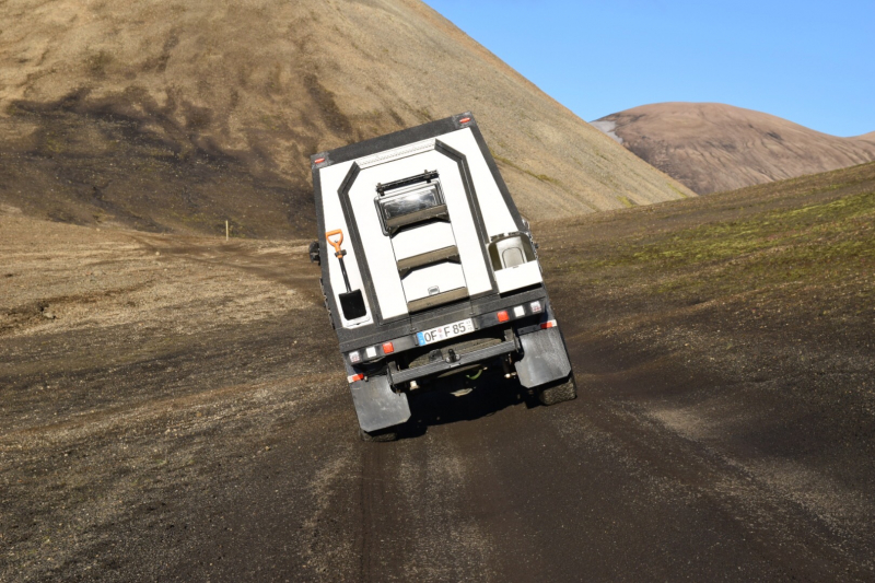 | Das Fahrgestell wurde weitesgehend modifiziert. Die Einzelradaufhängung habe ich rausgeschmissen und eine LC Starrachse verbaut. Diese ist wesentlich stabiler und macht jede Verschränkung mit. Das Fahrzeug verliert selbst im härtesten Gelände mit keinem Rad den Bodenkontakt. (69cm Verschränkung). Die Differenziale haben eine untersetzung von 4,88 was eine Höchstgeschwindigkeit von 110kmh erlaubt. Da das Fahrzeug aber fast nur im Ausland bewegt wird ist mir das egal... | |