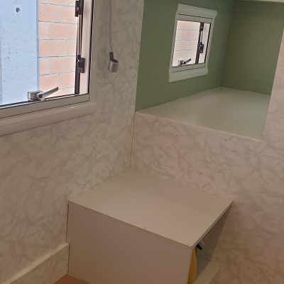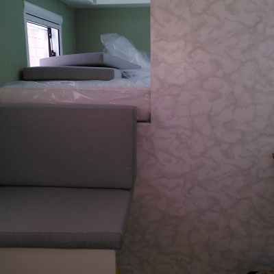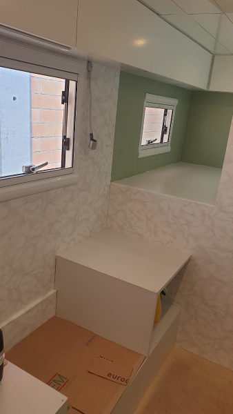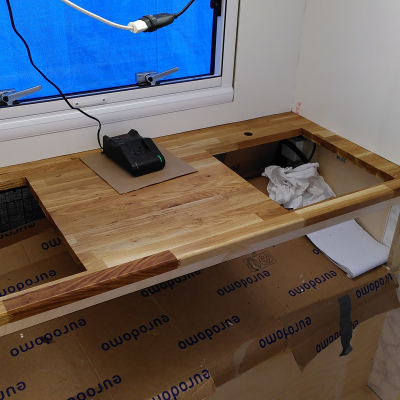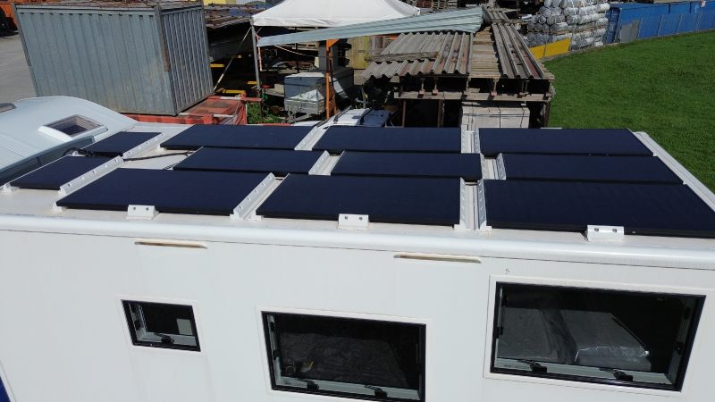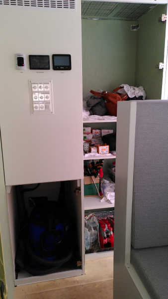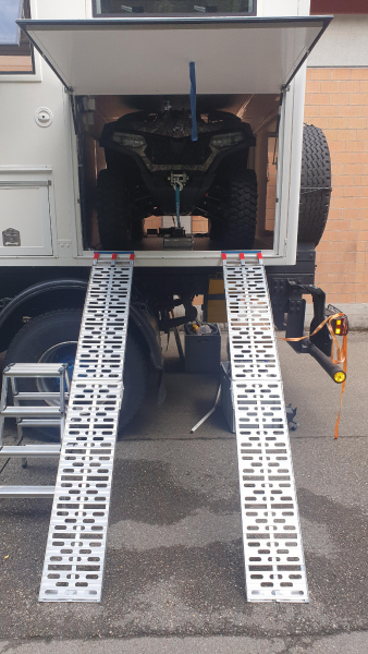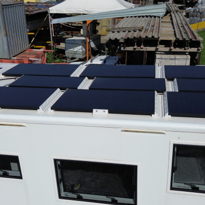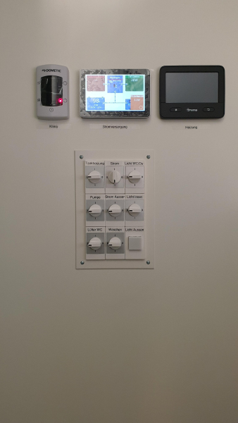 Clou: auf der Einstiegsseite ist eine ausfahrbare Terrasse geplant. Dazu werden 3 Holme aus der ganzen Wagenbreite ausgezogen und mit Gitterrosten (zum Transport an der äusseren Vorderseite der Wohnkabine in Schienen verstaut) 1,3 Kw Solarleistung mit flex-Modulen von Swaytronic, Kochen mittels 2-Platten Induktionsherd, 2 x KS nur elektrisch, Heizung Diesel + 12V + 230V Truma Combi D6 (ich möchte kein Gas im Fahrzeug). Tendenz zu 24V für Ausbau (kleinere Kabelquerschnitte, kleinere Ströme) Ist aber nicht möglich, daher 12V / 24V / 230V. Klimaanlage Dometic Freshwell 3000, Fluchttüre benötige ich nicht: keine Safaris geplant. | |
