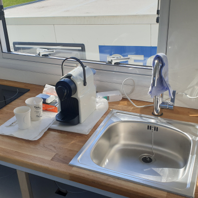 | Outside cooking facilities | keine , 230V Steckdose für mobilen Induktionsherd (Der Schweizer will im kalten Norden ein Fondue essen) |