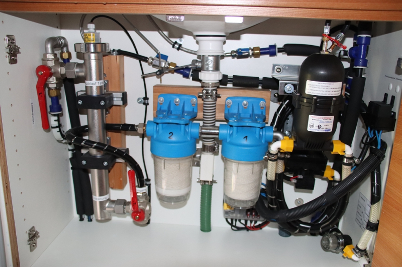 | Water filtration system | SHURFLO Vorfilter + 2x ATLAS Filter (Faser + Aktivkohle) + PURION UV Filter12V |