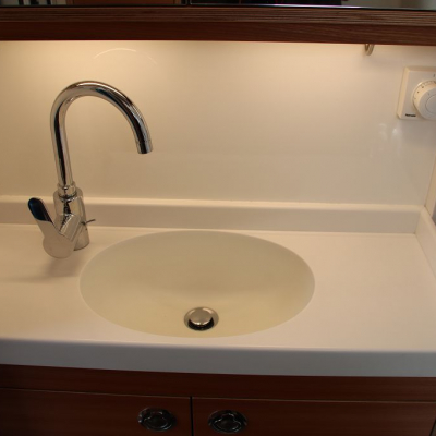 Küchenarbeitsplatte CORIAN „Sahara“ / Badezimmerwaschtisch CORIAN „Glacier White“ Southco M1 Edelstahl Schnappverschlüsse 2 Stück Kaltschaummatratzen FLEXIMA Caravan Comfort mit 2 Stück 5 Zohnen Lattenrost Prebit LED Innenleuchten Grohe Haushaltsarmaturen | |