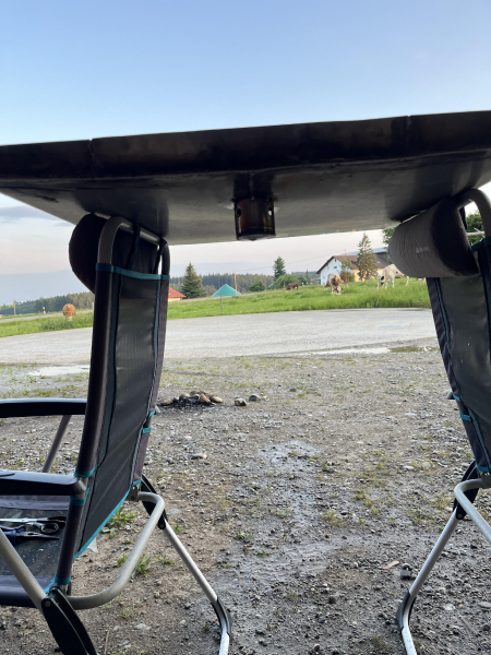 | Roof rack | Eigenbau, Siebdruckplatte verstärkt mit Holzlatten auf der unter und Airline auf der Oberseite . Befestigung und Gewichte anhand der Aufbaurichtlinie eingeteilt. |