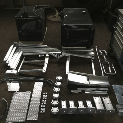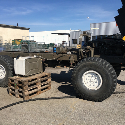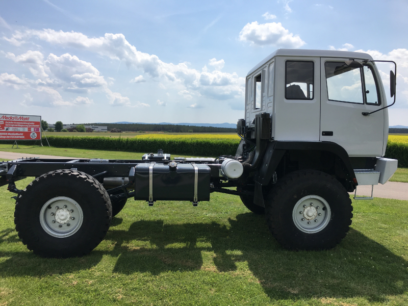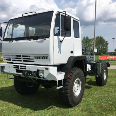 | Auspuff von EXCAP, Sitze von Scheelmann, Innenverkleidung erneuert und mit Kunstleder bezogen, Konsole vom zivilen Steyr | |