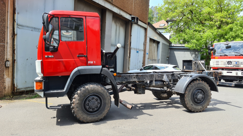 | Soll noch umbereift werden auf Felgen 11.75×22.5 mit 385/65 R22,5 Hankook AM15+. Zudem kommt der FW Dieseltank runter und ein ca. 400L Alutank dran. Rückgerüstet vom RW1 Aufbau, Rotzler Bergungswinde, Generator, FW Beleuchtung, Innen alle verbohrten Kunststoffteile neu, jeder Zentimeter Kabel was nicht mehr benötigt entfernt. | |