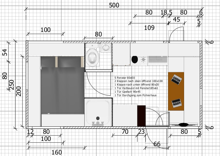 | Capacity of waste water tank(s) | 120Ltr. Grauwasser 120Ltr. Schwarzwasser |
