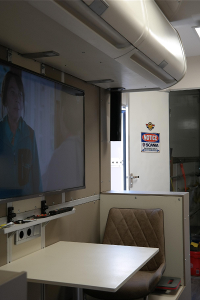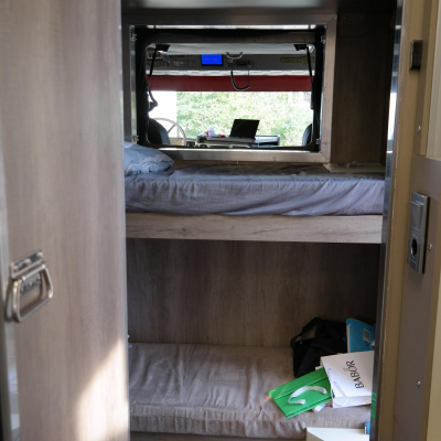 12,5 m^2 Wohnraum + 10,5m^2 Heckgarage Wohnraum: 2 Doppelstockbetten + Bad (Dusche/Waschbecken/Toilette) + 2er Sitzgruppe mit AI-Window (55Zoll TV mit Aussenkamera) + Stengel Miniküche (Geschirrspüler, 2 Kochplatten, Dometic Kühlschrank) Heckgarage: 4,20m mit Alu-Auffahrrampen (manuell) |
