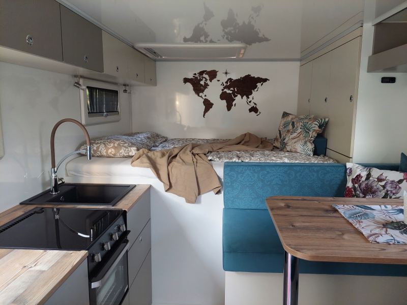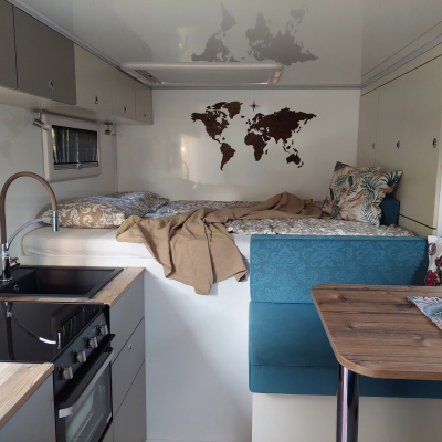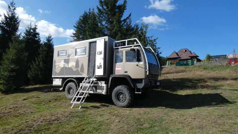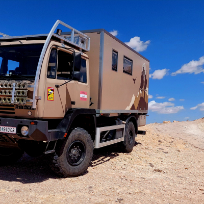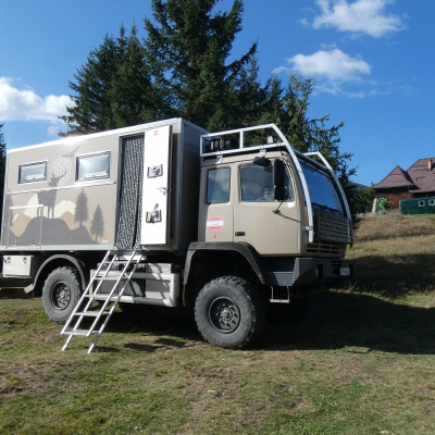 Baujahr Aufbau 2021 – Professionell optimiertes Allrad-Militärfahrzeug – Pistenfestes Fahrgestell mit permanentem Allrad, Differenzialsperren vorne, mittig und hinten – Geräuschgedämmte Fahrerkabine – Weltreisetauglich dank robuster Technik – kaum Elektronik, dafür wartungsfreundlich – Reisemobilzulassung mit eingetragenem 2. Sitzplätzen – Verbrauch ca. 19–24 l/100 km auf Asphalt – Technisch und optisch in Top Zustand – 14.50 er Bereifung + 4 Stk Ketten Fahrgestell – Technische Daten – STEYR 12M18, Baujahr: 1986, ca. 145.700 km – Motor: Reihensechszylinder, 6600 ccm, ca. 180 PS – Getriebe: ZF 8+1-Gang, synchronisiert, mit Untersetzung (Doppel-H-Schaltung) – Höchstgeschwindigkeit: ca. 115 km/h – Länge Breite Höhe 6,8m/2,55m/3,56m –Dachkonsole, , größere Lichtmaschine,, Dachträger Aluminium mit LED-Bar, Lackierung – Wohnmobil Zulassung PKW M1 Nova wurde bezahlt. – Tankinhalt 3x180L Tank – Eingetragene Sitzplätze 2 – Tüv/Pickerl neu bis September 2026 neu, ohne Mängel – Zugelassen auf 11,5t, Eigengewicht 8,6t Wohnkabine – Gefertigt Fa. Deluxe Group Die Wohnkabine besteht aus GFK Sandwichplatten 60 mm Stärke Innen und Aussen je 3mm GFK Deckschicht. Maße innen ca. Lang 4,50m Breit 2,40m Hoch 2,00m Die durchdacht ausgebaute Wohnkabine bietet alles, was man für langes, autarkes Reisen braucht: – Abgeschlossenes Bad mit Dusche, WC, Waschbecken – Großzügige Dachluke im Bad und über dem Bett mit Fliegengitter & Verdunklung – Sitzbank mit Stauraum & hochwertiger Polsterung, umbaubar zum Bett (durch höhenverstellbaren Tisch) – aufklappbares Bett mit Lattenrost 150 × 200 cm mit darunterliegendem Stauraum – von außen zugängliche 2 Stauraumklappe Kofferraum Größe L/B/H 2,4m/1,5/1m– Küchenzeile mit Spühlbecken und Gas Backofen. – viel Stauraum und 160L Kühlschrank sowie 40L Engel Gefrierbox – zusätzlicher 4 KW 2 Gasflammen Ofen in der Außenbox. Technik & Ausstattung Kabine – Fenster und Dachluken von Domatic – Frischwasser 300L & Grauwasser 100L – frostsicher im Innenraum – Planar / AUTOTERM 4KW Luft Dieselheizung - 10L-Warmwasserboiler Aufheizbar über Dieselheizung und 230V – Solarleistung: 1100W –Wechselrichter 2500W –LiFePO4 300 Ah 40A Ladebooster – 230V Außensteckdose – Wasserfilteranlage – Aktivkohle und Vorfilter -- 2 Stk Außenduschen links und rechts – Außenbeleuchtung | |