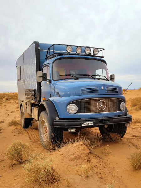 Die Idee für ein 4x4 Wohnmobil kam uns 2020 in Island, wo wir mit einem gemieteten Pickup die ersten Offraod Erfahrungen sammelten. Schnell war klar, was das Fahrzeug können muss: 4x4 um auch Schlechte Wege zu fahren (kein Extrem Offroad) und genug Platz im Wohnraum wenn es mal Schlecht Wetter ist. Nach kurzer, aber intensiver Zeit haben wir uns dann entschieden: Es wird ein 1986 Mercedes 911 LAF (4x4, Hinterachssperre und Untersetzung) Er lief von 1986-2022 bei einer Feuerwehr in der Schweiz. Wir wussten bereits Anfang 2021 dass wir ihn übernehmen können, somit starteten wir auch schnell mit der Suche nach einem Aufbau. Wir entschieden uns für einen Knaus DESEO Wohnwagen, welchen wir über ein Jahr komplett entkernt haben, und den Innenraum nach unsrem Geschmack umgebaut haben.